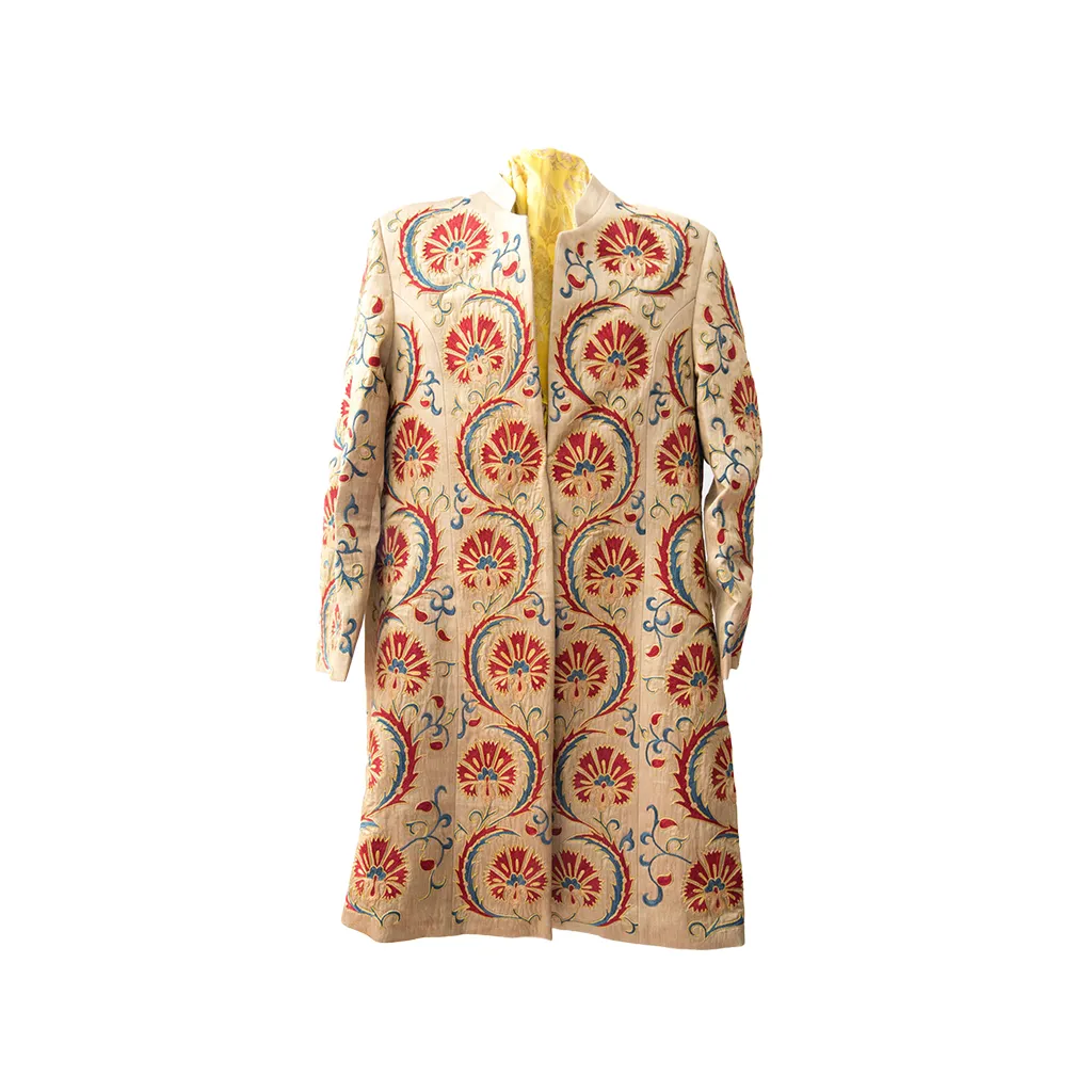 SILK ON SILK EMBROIDERY IN BURGUNDY AND WHITE